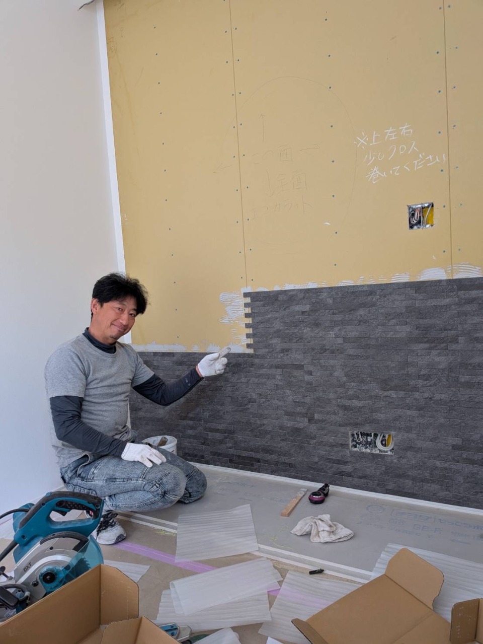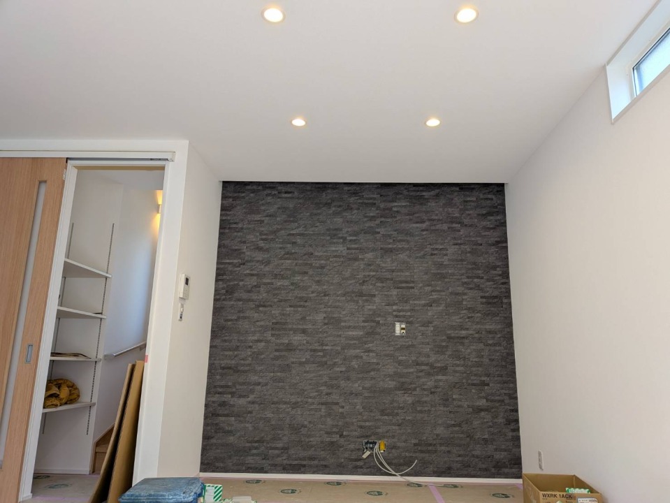 内部工事が順調に進み、本日はリビングに「エコカラット」の施工を行いました。