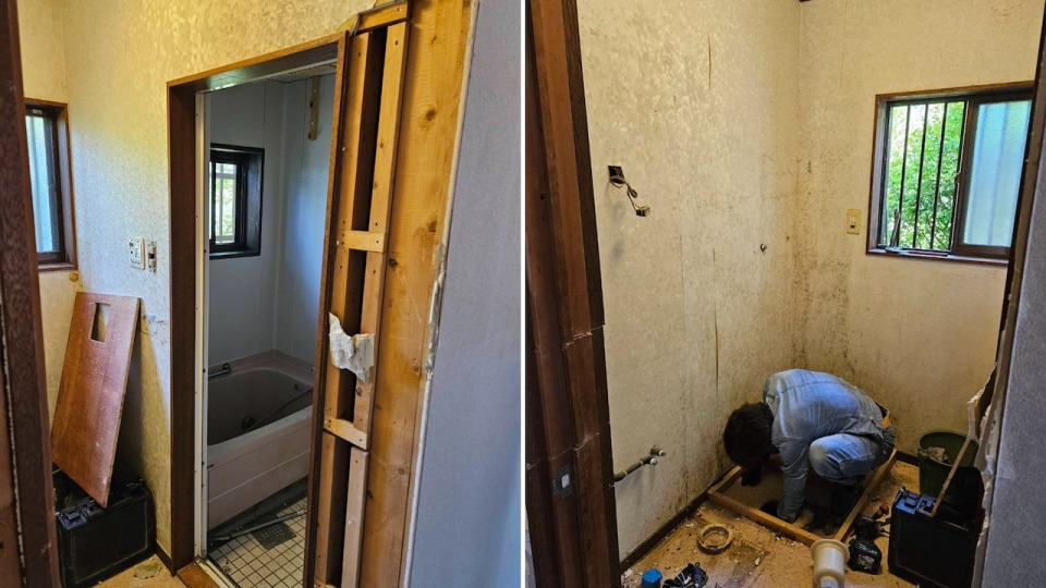 古くなったお風呂場と洗面所をスケルトン状態にし、新たにユニットバスや洗面ユニットを入れます。