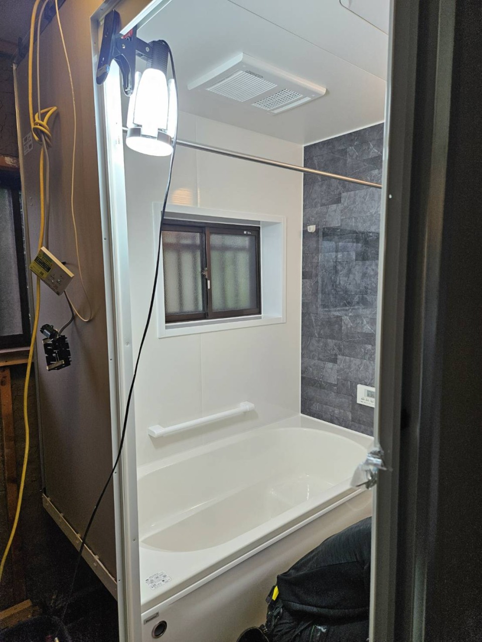 お客様はお住まいのまま工事を進めますので、お風呂を優先的に進めました。