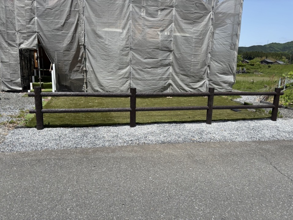 揖斐川町谷汲に建つログハウス風お住まいのリフォーム工事はフェンスの設置が完了しました。