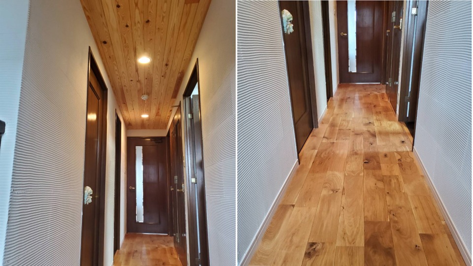 岐阜市のN様邸マンションのリフォームをお手伝いしました。床、天井、壁の部分リフォームです。表情豊かな無垢材やジョリパット塗り壁を採用し、シックな中にも温もりを感じる内装に仕上がりました。
