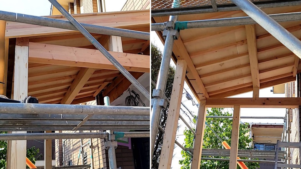 ひさしは雨や雪の吹込み防止、日よけ、玄関の汚れ防止など、さまざまな役割があります。拝見したところ、それほど築年数が経過しているお住まいではないのですが、雨漏りがするとのこと。解体してみると・・・驚きの事態が判明しました。