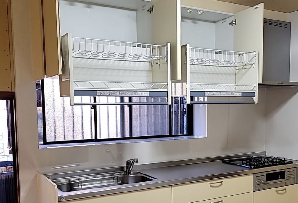 岐阜県安八郡安八町・S様邸のリフォームを進めさせていただいています。本日キッチンが入りました。奥様が選ばれたのは、便利な昇降式の吊戸棚が付いたシステムキッチン。スパイス類やお皿などがたっぷり収納できるだけでなく、使いたい物が簡単に取り出せるすぐれものです。「今夜から使うのが楽しみ!」と奥様はワクワクのご様子でした。