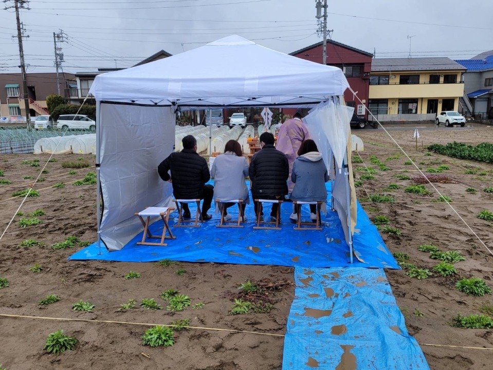 あいにくの雨でしたが、本日、無事に地鎮祭を執り行いました。