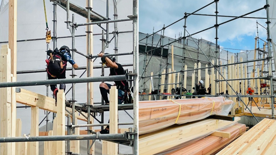 MIYOSHIの大工総勢11名がフル稼働で工事を進めました。
