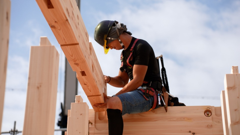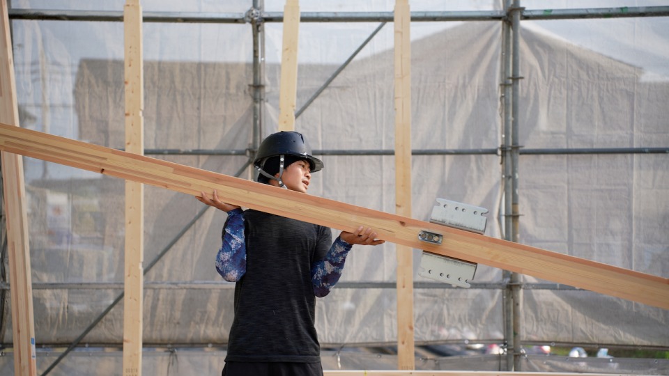 ベテランから若手までが力を合わせ、一気に骨組みを作り上げる上棟は、大工集団のMIYOSHIにとって特に盛り上がる1日です。