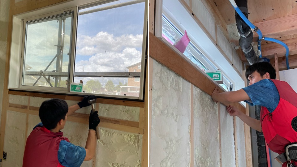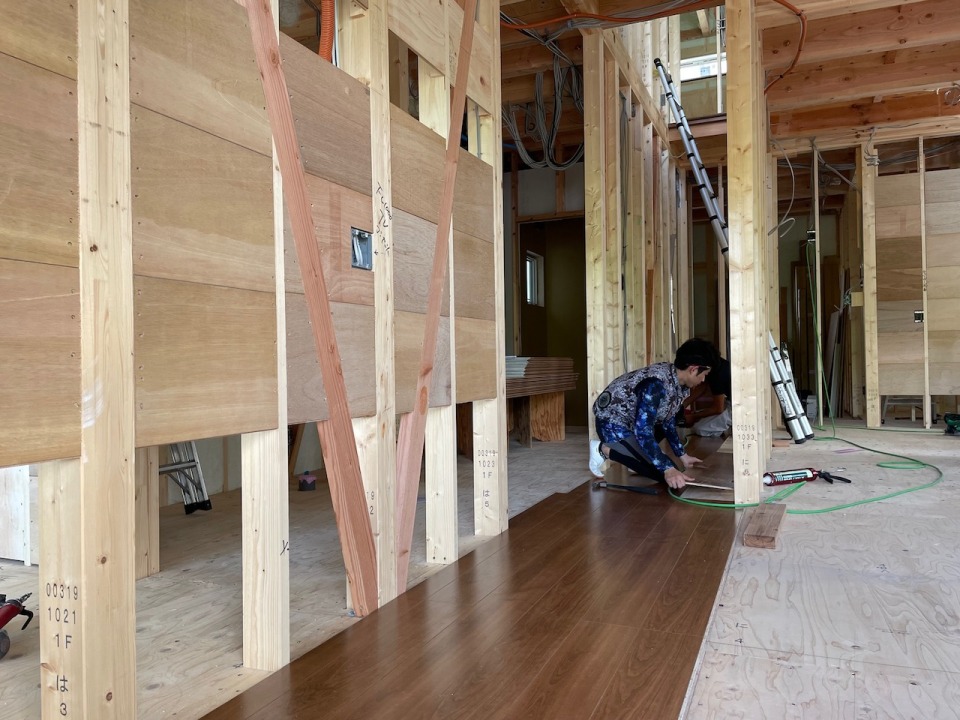 今日はフローリングやサッシ内枠材などの施工を行いました。
