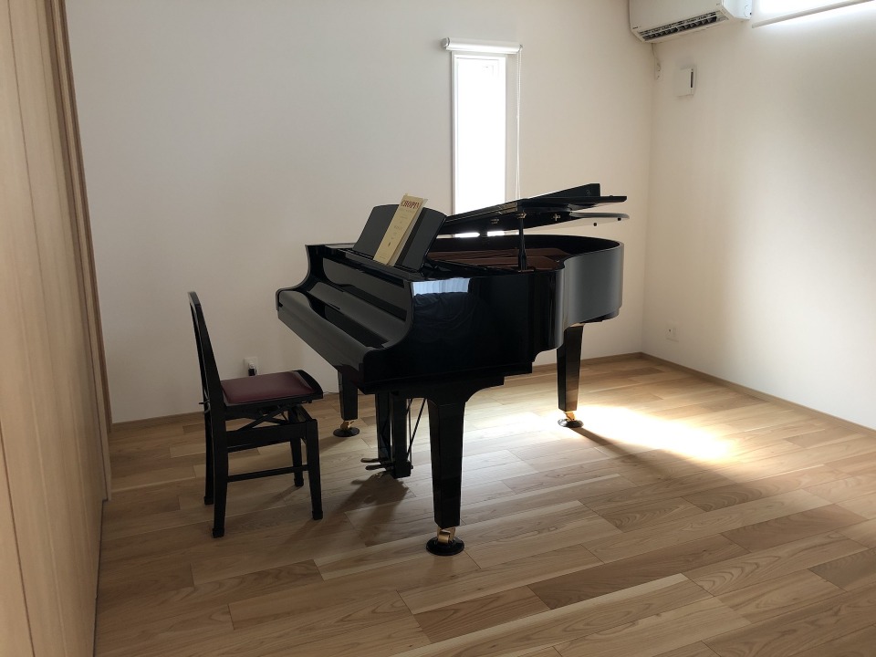 間取りのポイントは、大学生のお嬢様の個室を1階に配置したことです。グランドピアノを日々演奏されること、いずれ独立されることを考え、将来的にリビングになるスペースを個室としました。