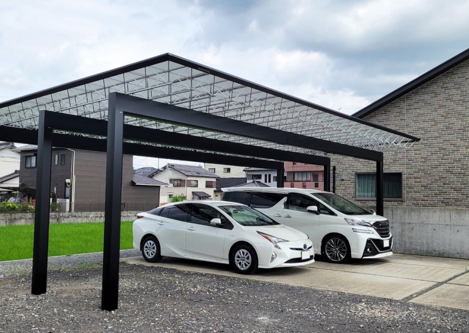 ご夫妻が選んだのは、三協アルミの「M.SHADE」。一般的なカーポートと比べて圧倒的な存在感とスタイリッシュさを誇る人気商品です。大開口で駐車がスムーズにできるのもポイントですね。