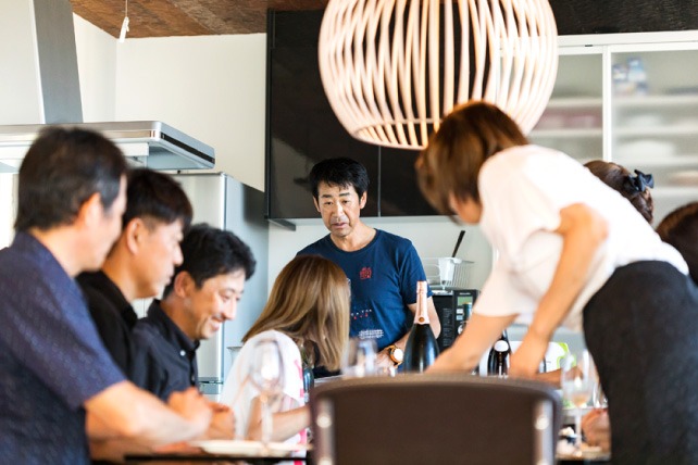 おもてなし上手のI様は、しばしばご友人とホームパーティを開いておられます。この日も、完成したばかりのご自宅でお披露目会が行われていました。「アイランドキッチンにしたことで、ゲストとコミュニケーションを取りながら、料理や飲み物の準備ができるようになった」とIさんはうれしそうに話します。