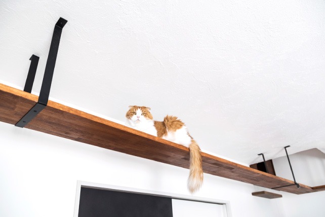 そんな姿を傍らで見守っているのが愛猫のゴンちゃん。MIYOSHIの提案で設けたキャットウォークや専用ドアがお気に入りの様子で、悠々と楽しそうに動き回ります。