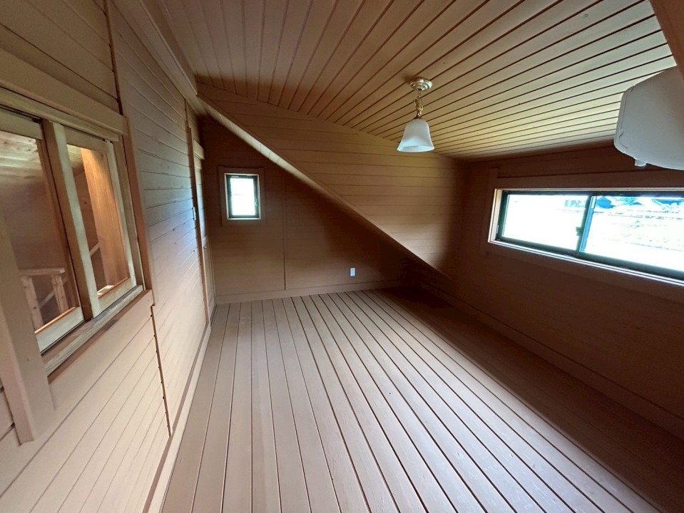 「長年憧れていた」という田舎暮らしを実現する決め手になったもう1つのポイントが、川のせせらぎが聞こえる築20年のログハウス風住まいと出会ったことでした。「購入前にMIYOSHIさんのことを知って、リフォームのご相談をしたことが良かった。実際に現地まで建物を見に来てくださり、素材や構造を確認していただけたので、安心しておまかせすることができました」とI様は振り返ります。
